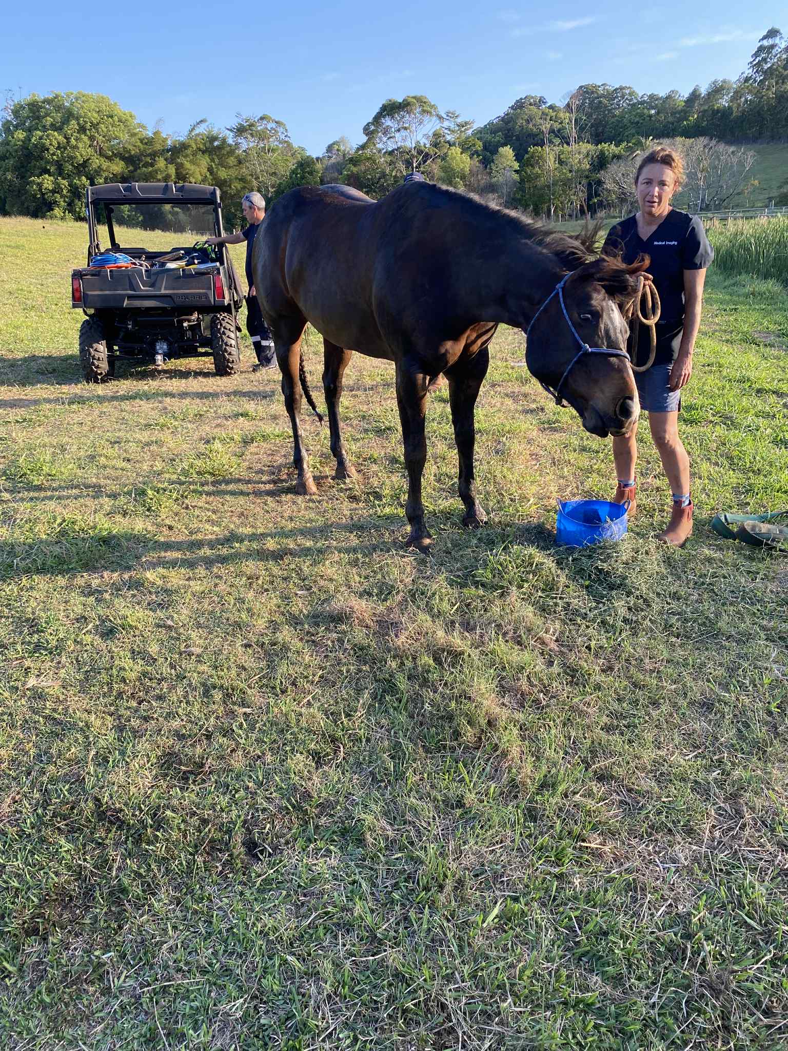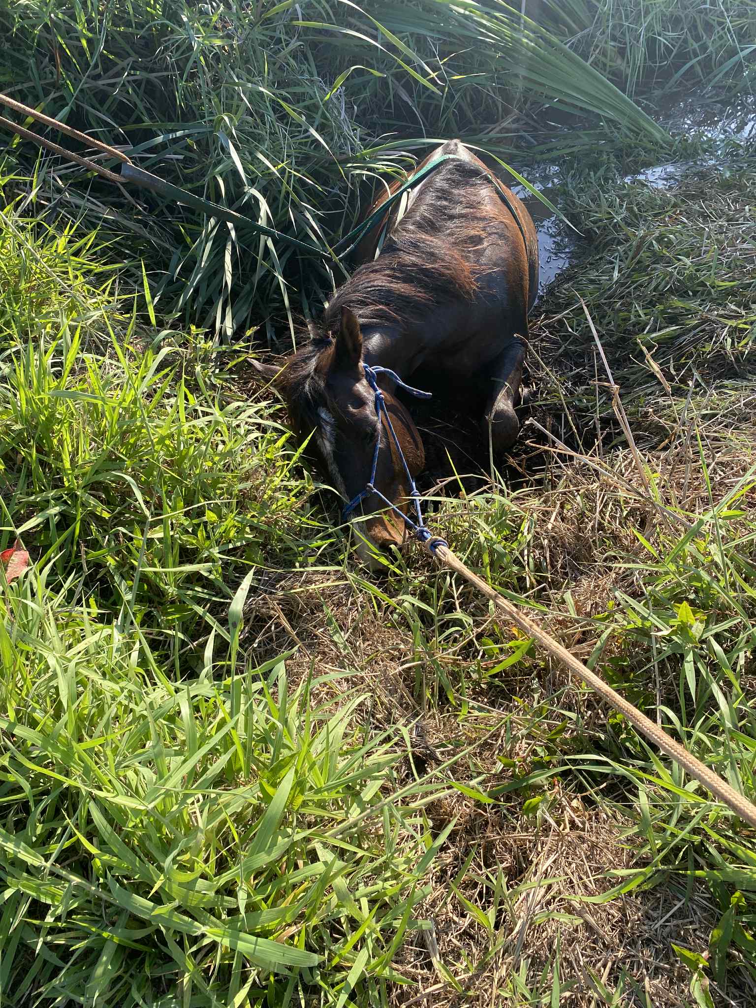 On 8 October 2025, we were contacted by the owner of Sunday, a gelding who had found himself in a sticky situation at Paynters Creek. In a classic case of spring fever, Sunday had attempted to cross the creek to visit a nearby mare but became bogged in deep mud halfway across.