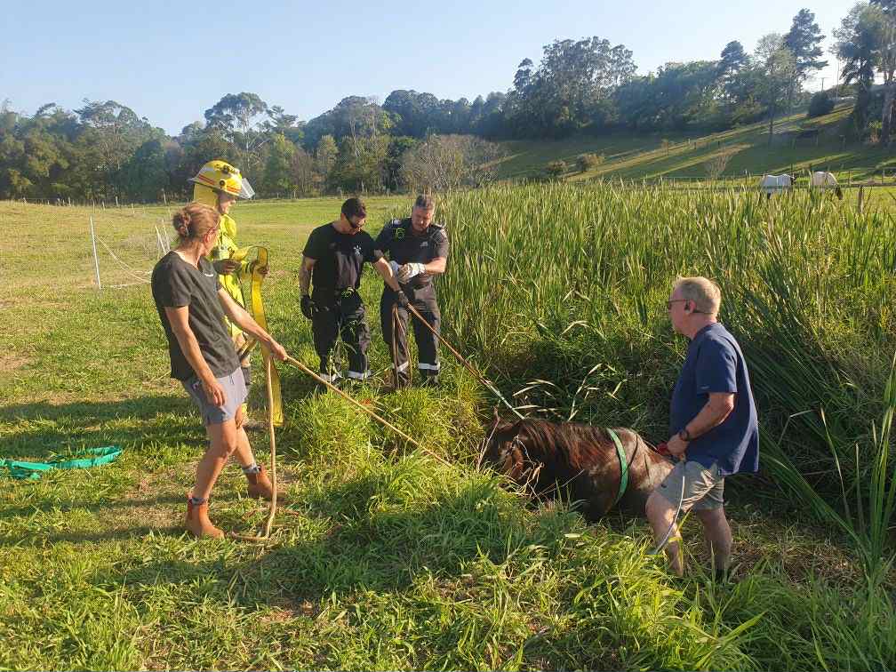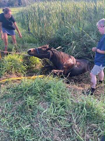 Horses trapped in mud or water can deteriorate rapidly due to exhaustion, stress, and potential respiratory compromise.